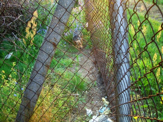 Przyprowadziła swoje dzieci na jedną z posesji w podwarszawskiej wsi (okolice Chynowa), sama jednak będąc bardzo płochliwa i trzymając się w bezpiecznej odległości za ogrodzeniem. Właściciel posesji zgodził się nie przeganiać szczeniaków, ale praktycznie nie mają one dachu nad głową, tylko kilka desek, pod które mogą wejść, gdy pada deszcz.